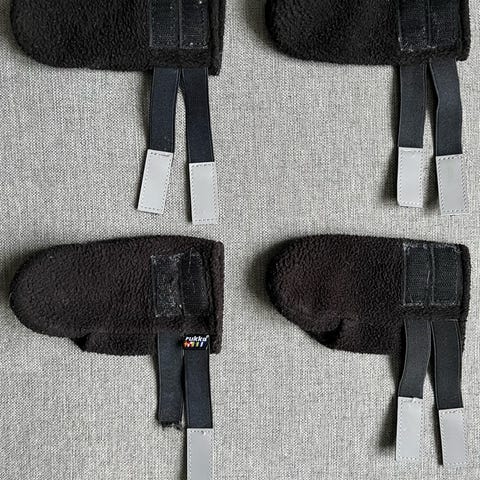 Muutamia kertoja kokeilussa olleet fleece tossut. Tarrat pitää todella hyvin ja helppo pukea päälle.