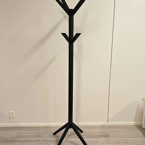 Tyylikäs ja tukeva Venla-pystynaulakko. Metallivartinen naulakko sopii pieneen tilaan. Naulakon korkeus on 170 cm ja jalan halkaisija 30 cm.