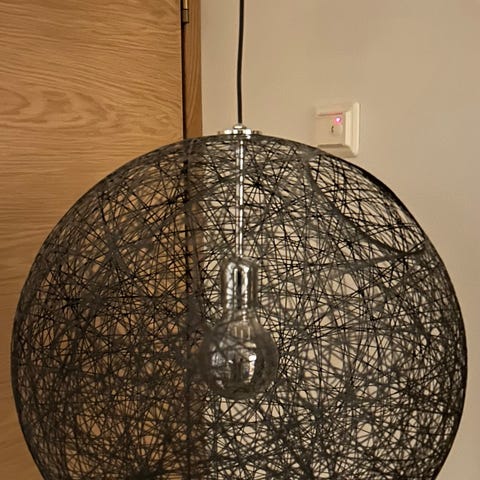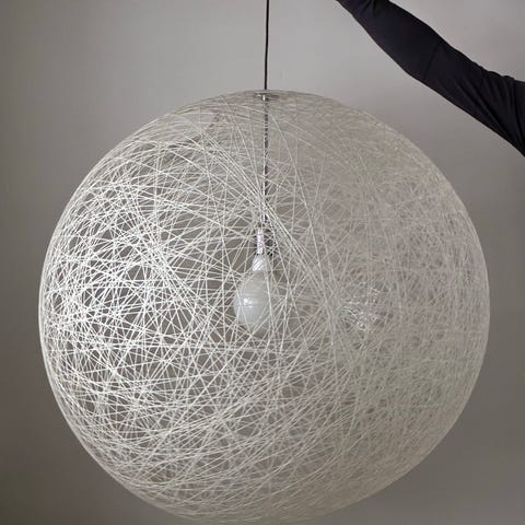 Moooin Random Light II -riippuvalaisimen sattumanvaraisesti risteilevä lasikuituseitti tekee jokaisesta valaisimesta uniikin. Koska pallomainen Random Light II on osittain läpinäkyvä, on se reilusta koostaan huolimatta ilmeeltään herkkä ja ilmava. Random Light II -riippuvalaisin onkin omiaan tuomaan pehmeää valoa makuuhuoneeseen tai hienovaraista näyttävyyttä olohuoneeseen tai ruokapöydän ylle, ja se sopii erinomaisesti myös julkisten tilojen auloihin sekä ravintoloihin ja kahviloihin.