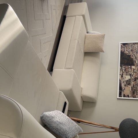 Hyväkuntoinen sohva portaattomalla sähkö mekanismilla, laadukas pehmeä, paksu ruskea nahka. Muki telineet. Tuolit saa nappia painamalla säädettyä eri asentoon ja ovat erittäin mukavat istua. Istuimet saa myös tarvittaessa irroitettua toisistaan irti. Nahkapinta on täysin moitteeton ja mekanismit ehjät.