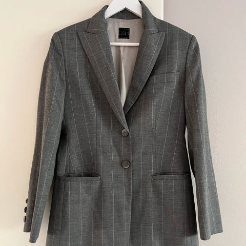 Hyväkuntoinen, vuorillinen Ril'sin bleiseri. Bleiserin edessä olevissa saumoissa on molemmin puolin kauniisti ja huomaamattomasti piiloutuvat reilun kokoiset taskut. Materiaali on 54% polyesteriä, 44% villaa ja 2% elastaania. Koko on reilu 36. Vaikka yleensä kokoni on 38, on tämä sopinut hyvin. Pituus olka-helma 58cm. Kai-kai 48cm. Sekä Toridiili että nouto sopivat hyvin.