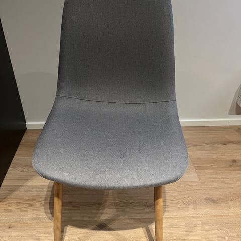 Ruokapöydän tuoli JYSK JONSTRUP harmaa kangas, jalat luonnon tammenvärinen. 4 kpl yhteensä 20€.