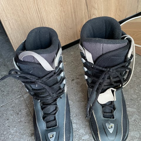 Burton Zipline Boa lasten lumilautakengät. Koko EU 36,5 (US 4 / 23 cm). Väri musta, sinisellä pohjalla ja keltaisilla yksityiskohdilla. Kengissä on Boa-kiristysjärjestelmä, joka helpottaa ja nopeuttaa nauhojen säätämistä. Koko on mielestäni hiukan ilmoitettua pienempi. Suosittelen n. 35 jalkaan, mutta sovittamalla tulee paras.