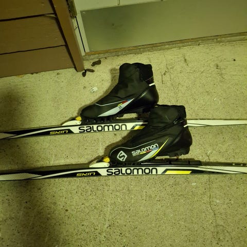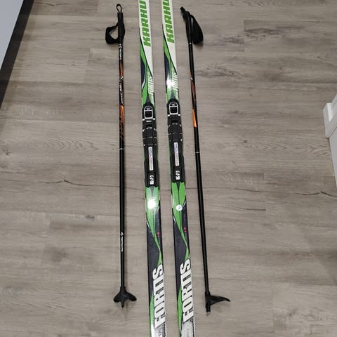 Suksilla uutena hintaa 260e, siteillä 69e ja sauvoilla 40e.
