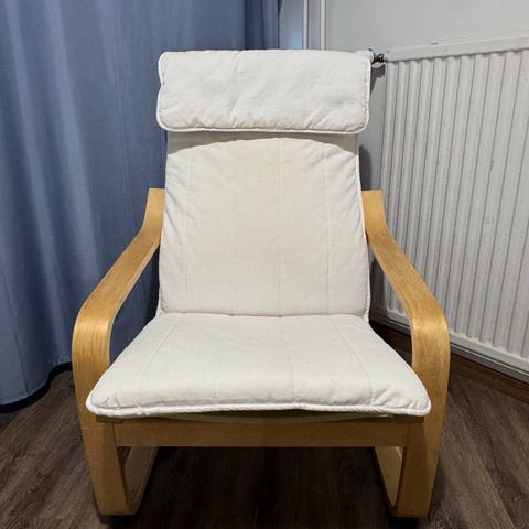 Myydään hyväkuntoinen Ikean sininen Poäng nojatuoli.