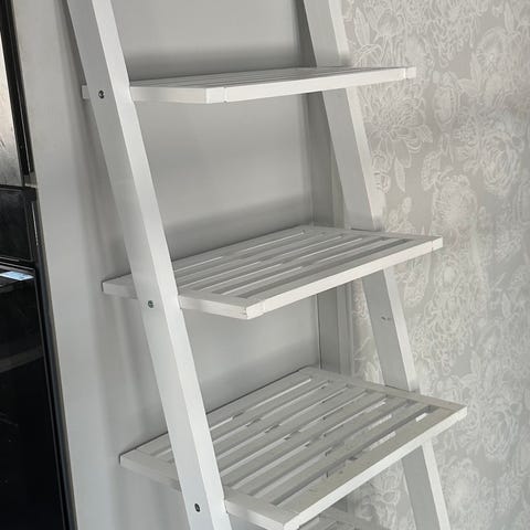 Kuvanmukainen valkoinen, kevytrakenteinen, apuhylly esim 1/2 korkean jääkaapin tai kaappipakastimen päälle. Alimmaksi mahtuu esim. mikroaaltouuni tai airi.