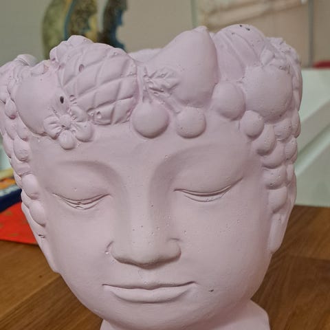 Pahviruukku/tynnyri, ollut ison kukkaruukun suojaruukkuna, kevyt ja vaaleanpunainen. Korkeus n.58 cm, halkaisija n. 41 cm. Nouto Raisio tai Paimio.