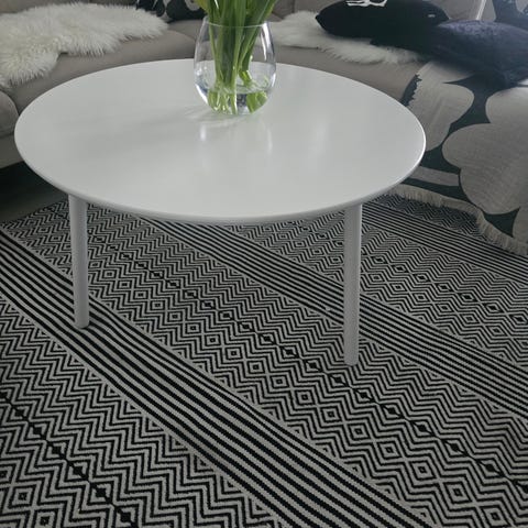 Valkoinen pyöreä sohvapöytä säilytystilalla