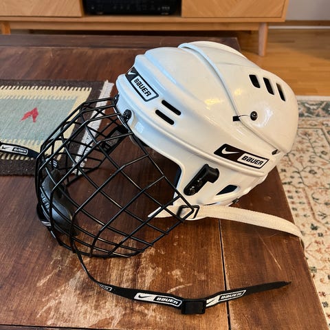 N 11-13-vuotiaalla käytössä ollut kypärä. Hiukan kulumaa pinnassa. Saa sovittaa.