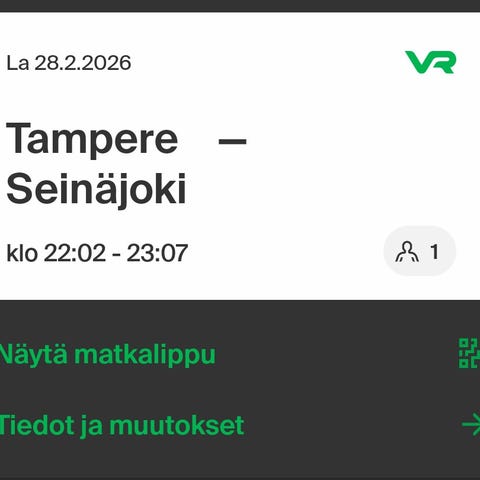 Seinäjoki - Tampere -Lempäälä pe 27.2. klo 17.18-19.15