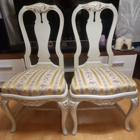Kierrebarokkia, pöytä ja tuolit.