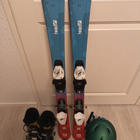 Head lasten laskettelusukset ja niihin sopivat Tecno-monot. Monon pohjallisen pituus 20,5cm eli n. koko 32-33. Vielä oikein käypä setti seuraavalle laskettelijalle. Nouto Ylistaro.
