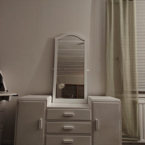 Kaunis peililipasto. Myös meikkipöytä. Siisti lakkapinta. Vähäisiä käytön jälkiä. Kuvissa saattaa pölyä olla pinnassa.
