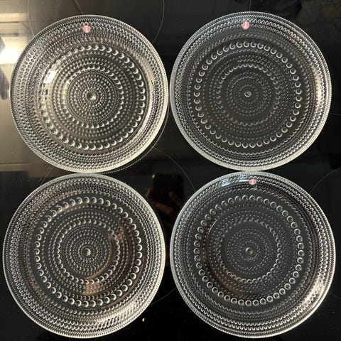 Myydään erittäin hyväkuntoiset Iittala Kastehelmi aluslautaset 4 kpl. Nouto Töölöstä.