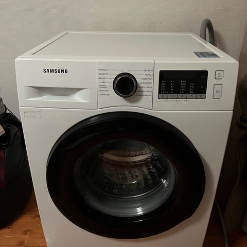 Samsung edestä täytettävä pesukone. Väri valkoinen, etupaneelissa digitaalinen näyttö ja ohjelmanvalitsin. Malli WW6000T. Ollut vähäisellä käytöllä kakkosasunnossa, lähes uuden veroinen. 9kg