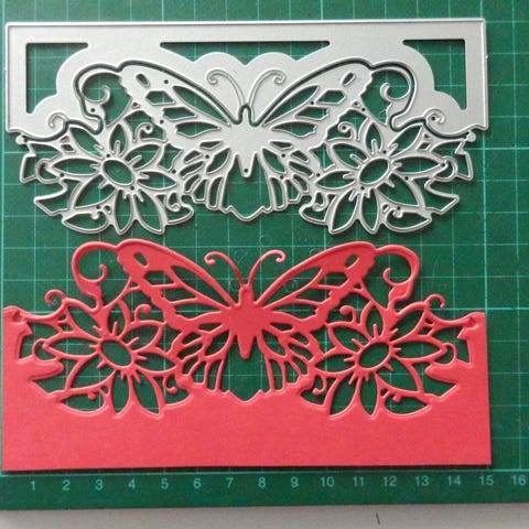 Metallinen ruusuaiheinen stanssisetti korttiaskarteluun ja skräppäykseen. Setissä useita eri kokoisia ja muotoisia kukka- ja köynnöskuviollisia stansseja, joilla voi leikata koristeellisia reuna- ja kulmakuvioita paperista tai ohuesta kartongista. Sopii käytettäväksi yhteensopivan stanssauslaitteen kanssa. Myyn settinä.