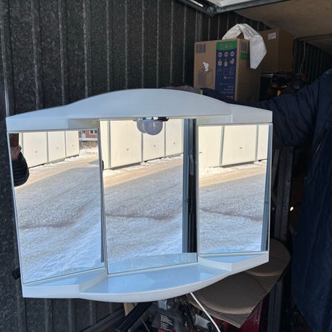 Kuvan mukainen peilikaappi. Lipassa lamppu.