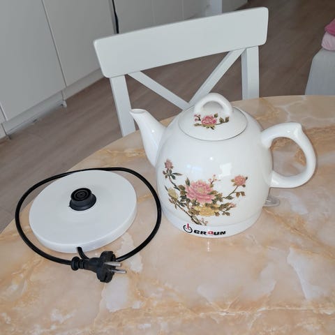 Point merkkinen musta vedenkeitin. Siisti ja vastaa uutta, ostettu tammikuun alussa powerilta ja oli käytössä ehkä kuukauden. Jäi ylimääräiseksi kun perheen tee hifistelijä ostikin uuden lämpötila säätelyllä eikä saa palautettua enää kun alkuperäinen pakkaus ja käyttöohjeet tuli heitettyä menemään.