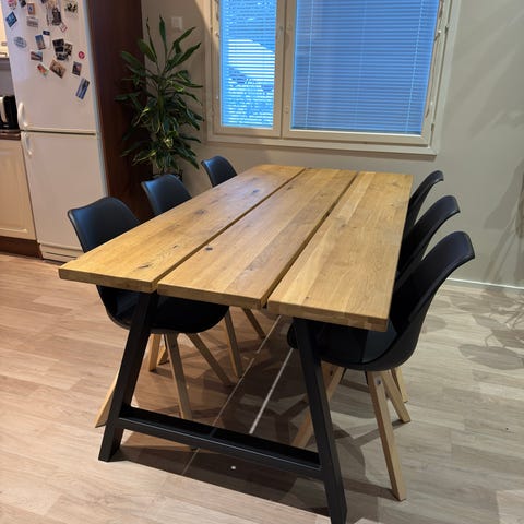Myydään Jyskistä pari kuukautta sitten ostettu ruokapöytä ja tuolit. Ei oikein sopinut itselle, niin tämän johdosta myyntiin.