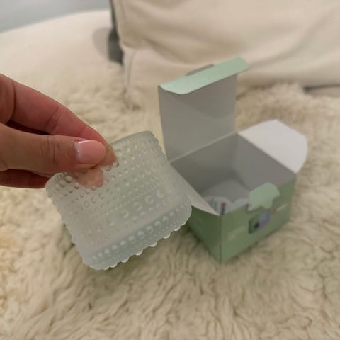 Koko: n. 10 X 12 cm ja korkeus n. 4 cm. Kunto moitteeton. Vaikka tuikku-alustaksi. Väri: Toinen on kirkas ja toinen on turkoosi.
