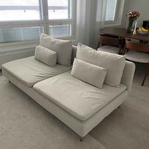 Myynnissä Ikean Söderhamn kahden istuttava sohva, värissä Gunnard Beige. Ostettu noin 3 vuotta sitten käytettynö ja on ollut siitä asti aktiivisessa käytössä. Kunto edelleen hyvä.