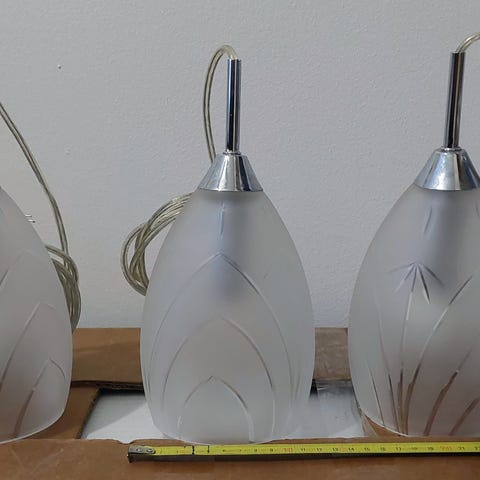 -3kpl laadukkaita vihreäkupuisia huurrelasi-riippuvalaisimia. Valaisinpistokkeet kaikissa. Soveltuvuus esim. kasvivaloiksi kukkaryhmille.