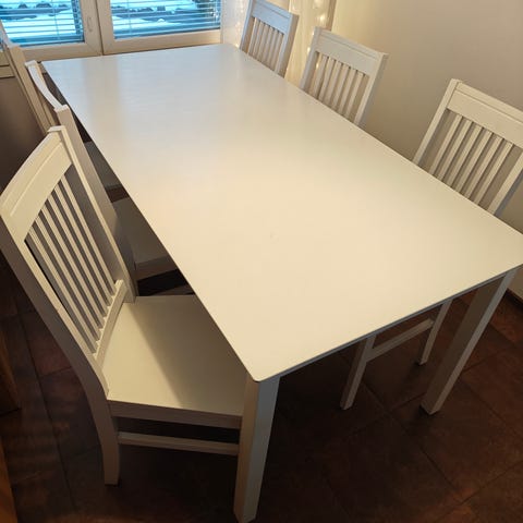 Myydään todella tukeva ruokailuryhmä. Pöytä jatkopalalla 170 cm ( 140 ilman jatkoa)