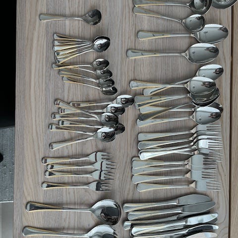 Hyväkuntoiset aterimet.