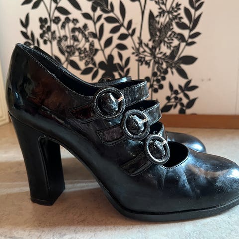 Kiila pohjalla mustat naisten tango merkkiset kengät. Niissä kumipohja kokoa 40.