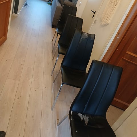 kuvan ruokapöytä 122 x 80 + tuolit 4 kpl osassa tuoleista istuin kangas revenntyt