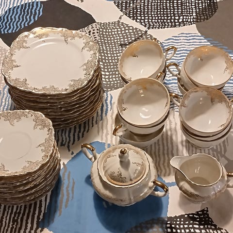 Käyttämättömät. Kahvikuppi, tassi ja lautanen, 6 kappaletta.