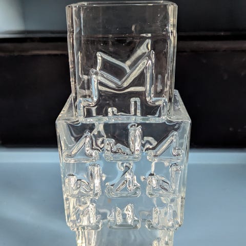Hyväkuntoinen kaunis maljakko. Nuutajärven lasi oy, Wärtsilä 150 vuotta, ei halkeamia tai lohkeamia, Pauli Partanen, kork. 19cm