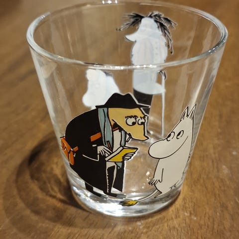 Iittala Muumi-juomalasi Niiskuneiti Auringossa, valmistettu 2011-2012