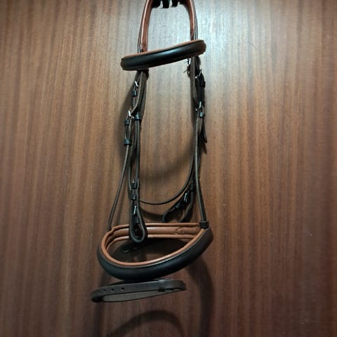 Hyväkuntoiset ruskeat full koon suitset. Kauniit vaaleat tikkaukset.