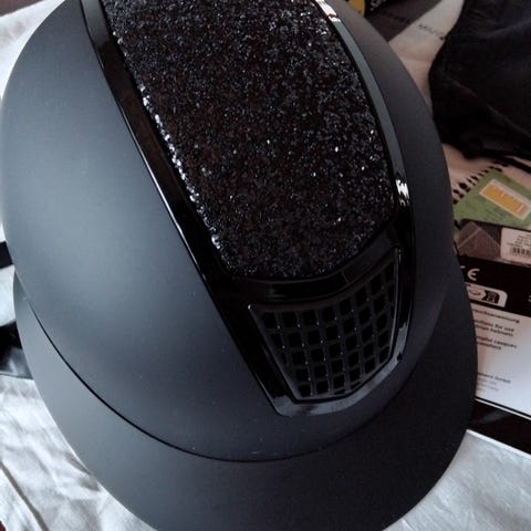 Hansbo sport ratsastuskypärä, väri musta. Kypärässä on säätömahdollisuus takana. Sivussa pintanaarmuja. Hyvässä kunnossa muuten eikä tiputtu kypärä päässä. Koko M 55-57. Mukaan kypäräpussi
