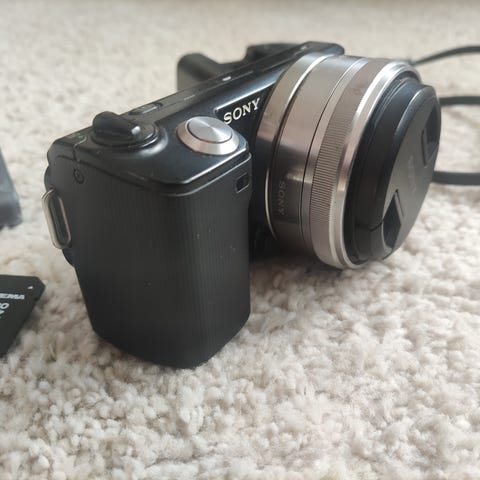 Sony Alpha a200 digijärjestelmäkamera musta. Kamerassa on peilietsin, takanäyttö ja useita säätöpainikkeita manuaali- ja automaattiasetuksille. Mukana kuvissa näkyvä objektiivi Sony A -bajonetilla sekä erillinen Tamron-telezoomobjektiivi, jossa on zoom- ja tarkennusrengas sekä makro-asetus. Runko ja objektiivit soveltuvat yleiskuvaukseen, kuten maisema-, muoto- ja lähikuvaukseen sekä pidemmän polttovälin telekuvaukseen. Kamerassa on kaulahihna ja objektiivinsuojat.