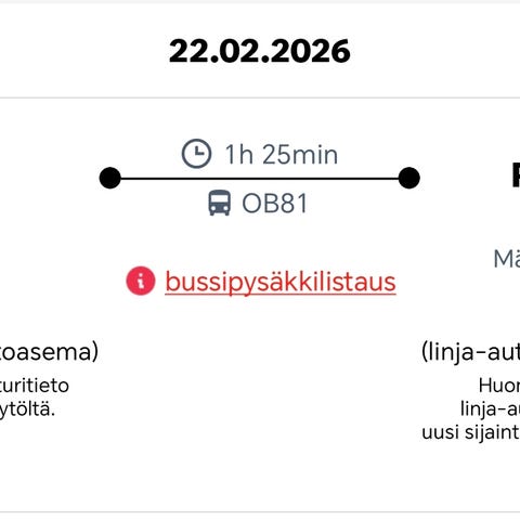 Myydään bussilippu 18.2 Tku-Hki-Joutsa