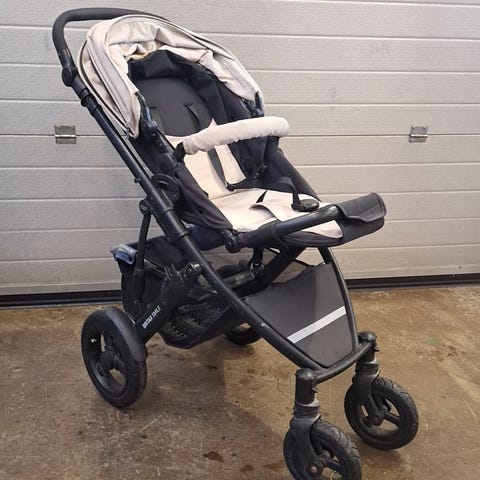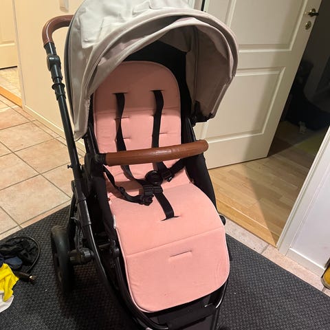 Tavarakori alaosassa. Istuinosassa on viisipistevaljaat ja turvakaari. Kuomu suojaa lasta auringolta ja tuulelta. Kuomun saa laskettua lähes alas asti, ja siinä on kurkistusaukko. Selkänojassa on eri asteita, ja sen saa laskettua alas.
