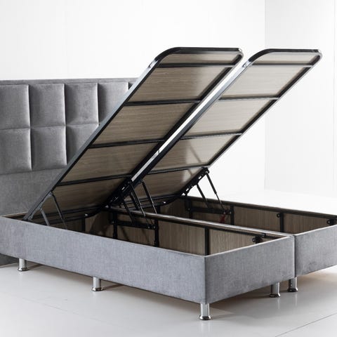 Sängynrunko säilytystilalla vaaleanbeige