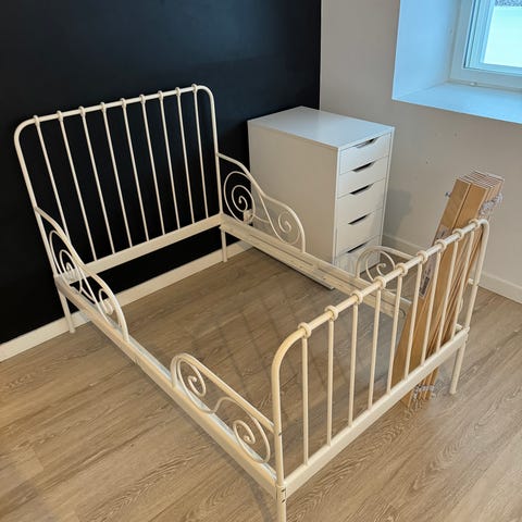 Ikean Minnen jatkettava lasten sänky. Patjat saa mukaan. Patjoja ja sänkyä muudään Ikeassa edelleen.