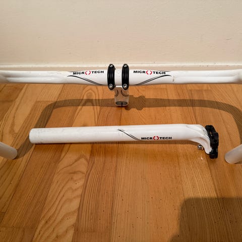Microtechin eli Basso Bikesin sisäisen merkin ohjaustanko, kannatin ja satulatolppa settinä.