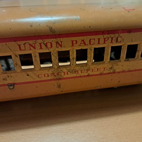 30-luku Saksa Fandor antiikki junarata rautatie peltinen puinen vieteri kiskoja