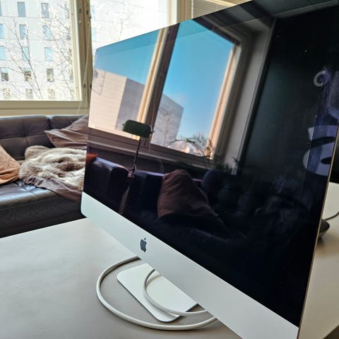 Apple iMac, näytön koko 21,5". Käyttöjärjestelmänä macOS High Sierra. Prosessori Intel Core i5, 3,7 GHz. Näytönohjain Intel Iris Pro Graphics 6200. Laitteessa on erillinen näppäimistö ja hiiri. Jo iäkäs mutta soveltuu yleiseen kotikäyttöön, toimistotöihin ja internetin selaamiseen.