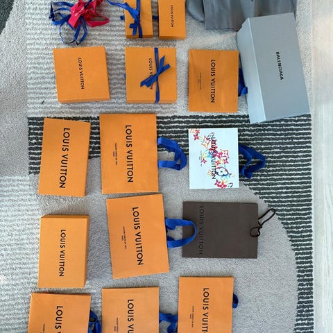Hyväkuntoisia Louis Vuittonin laukkulaatikkoja 2 kpl ja paperikassi 1 kpl. Myydään yhtenä settinä.
