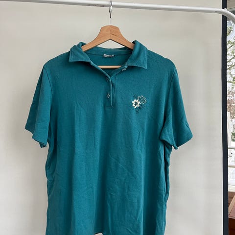Värikäs, kesäinen pikeepaita lyhyillä hihoilla. Pirtsakka, uniikki kuosi. Mukava, hengittävä materiaali. Paidassa kokomerkintä D24, arvioisin vastaavan kokoa L.