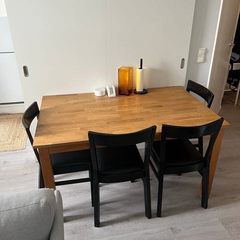 Myydään tammipöytä, täyspuuta, 160x80cm, korkeus 75cm. Osmo colorin öljyvahalla käsitelty, loistava, kestävä pinta. Hyvä, käytetty kunto, tukeva, mainio pöytä seuraavalle.