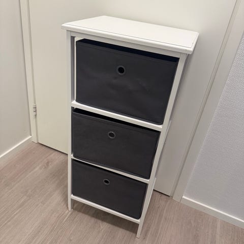 Myydään Jysk Tange lipasto, johon jälkeenpäin tuunattu kultaiset vetimet ja puinen päälylevy. Levyssä muutama tussinjälki.