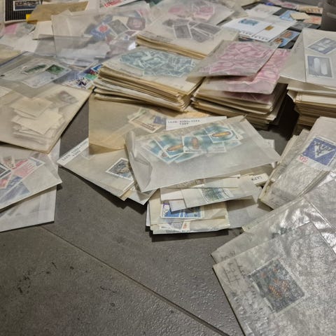 Paljon arkkeja, postimerkkivihkoja, yksittäisiä. Ruotsia, Gronlantia...ihan mitä vaan. Isoin osa postituoreita. Itsellä ei arvoista tietoa.