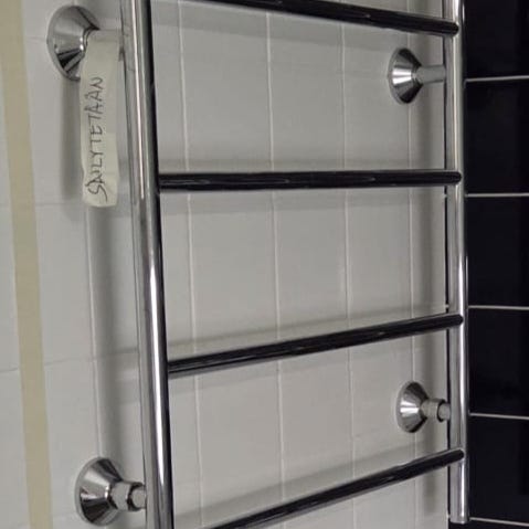 Rej Design Retro 60 cm pyyhekuivain, eli rättipatteri. Kyseinen yksilö on todellinen retro-yksilö vuodelta 1982. Irrotettu toimivana kylpyhuoneremontin yhteydessä. Ollut kytkettynä lämpimään käyttöveteen.