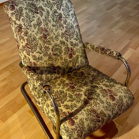 Kukkakuvioitu nojatuoli puurunko